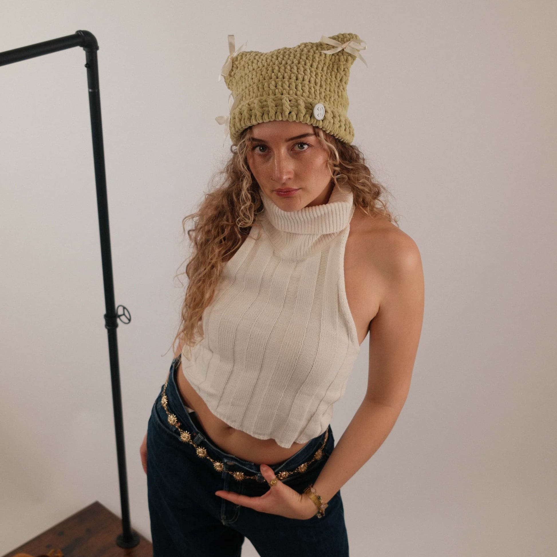 Technically a catbeanie. Spiritually a club look. Girls with aura wear it — boys too.